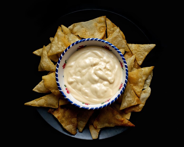 Poner al fuego los ingredientes hasta que se funda el queso y se cocine un poquito la nata, espesando al gusto.