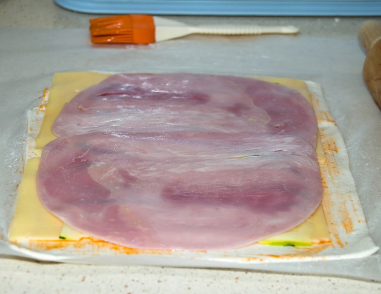 Ponemos las lonchas de queso sin lactosa y de york encima; echamos las